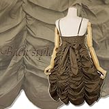 裏地あり、生地伸縮性なし、バスト後ろゴムシャーリング、スカート部分ゴム入りシャーリング。